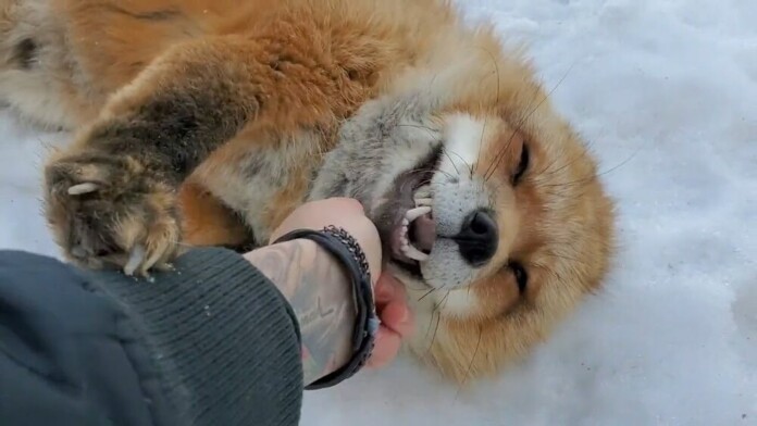 Οι κάτοικοι τράβηξαν βίντεο με την αλεπού και τα σκυλιά να παίζουν