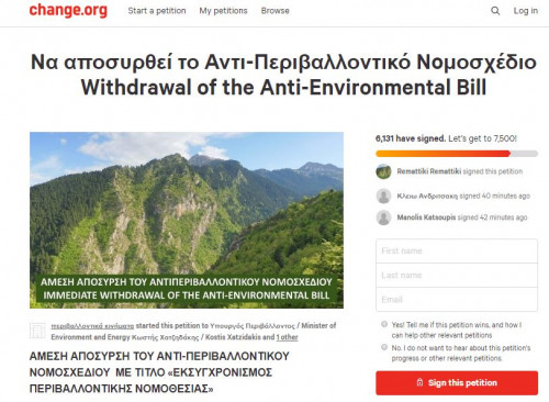 Έντονες αντιδράσεις έχει πυροδοτήσει το νομοσχέδιο «Εκσυγχρονισμός της περιβαλλοντικής νομοθεσίας», που φέρνει προς ψήφιση η κυβέρνηση, με δεκάδες περιβαλλοντικές οργανώσεις να απαιτούν την άμεση απόσυρση του.