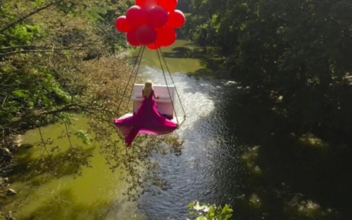 Το πιάνο αιωρούνταν στην κοιλάδα των Τεμπών κρεμασμένο από τεράστια μπαλόνια δημιουργώντας μια εξωπραγματική ατμόσφαιρα για τα ελληνικά δεδομένα.