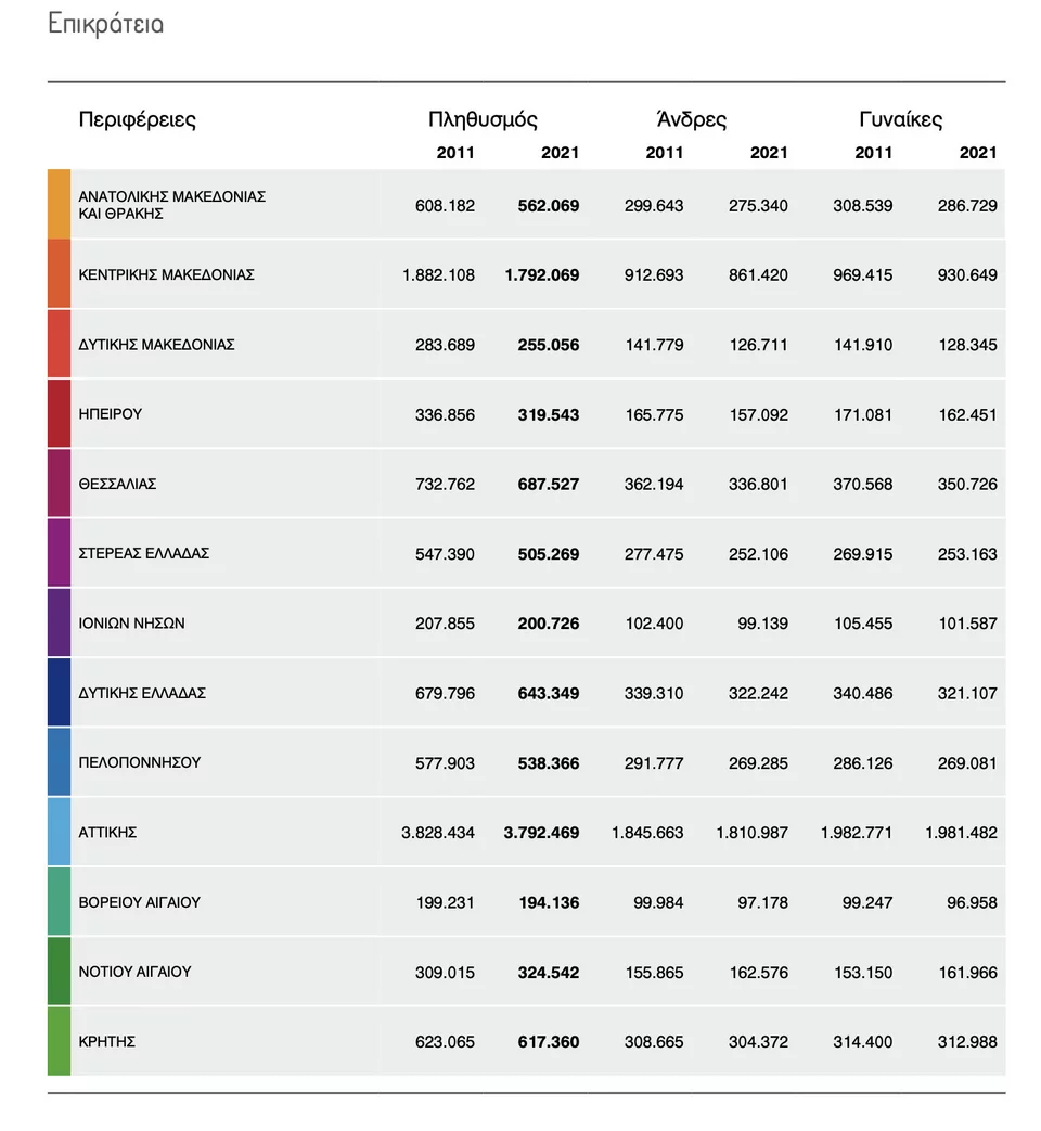 Η μόνη Περιφέρεια που «είδε» αύξηση πληθυσμού στην απογραφή του 2021