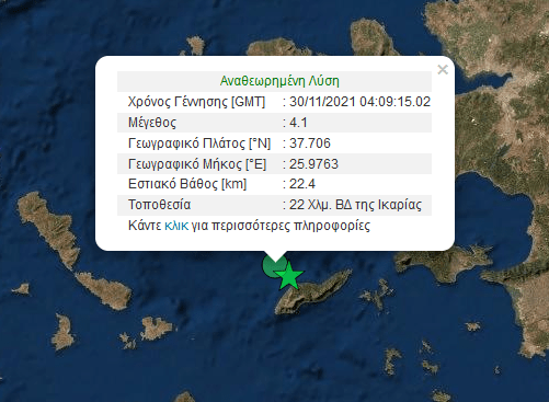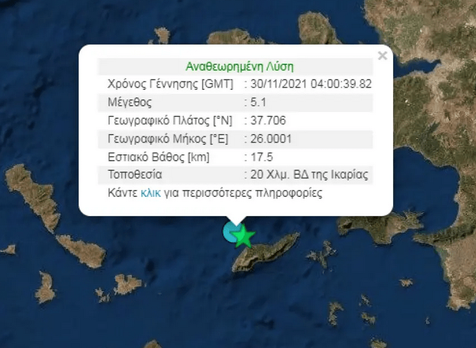 Ισχυρός σεισμός μεγέθους 5,1 βαθμών της κλίμακας Ρίχτερ σημειώθηκε στις 06:00 το πρωί ανοιχτά της Ικαρίας.