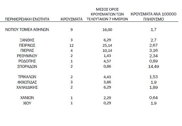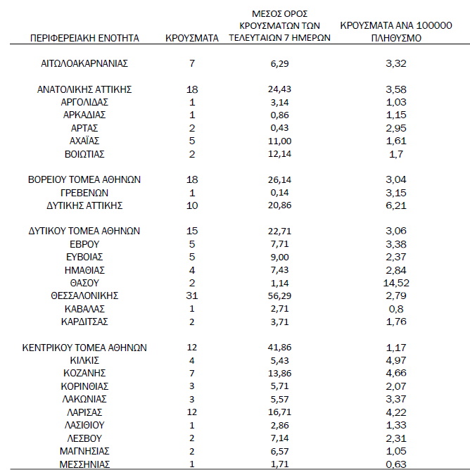Από τα 237 κρούσματα μόλις δύο εντοπίζονται στην Ήπειρο και συγκεκριμένα στην Άρτα.