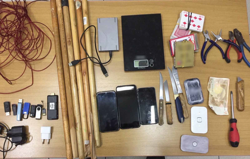 Κατά τη διάρκεια της έρευνας, που πραγματοποιήθηκε από την εξωτερική φρουρά του Καταστήματος Κράτησης Κορυδαλλού παρουσία εισαγγελέα, βρέθηκαν και κατασχέθηκαν:
