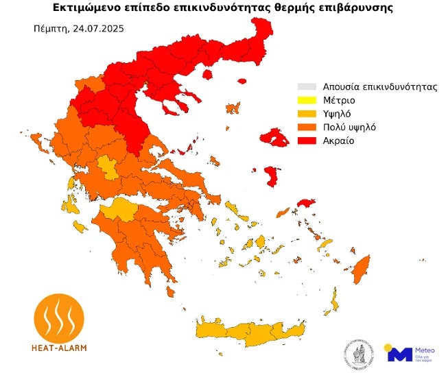 1. Την Πέμπτη (24-07-25) οι μέγιστες τιμές θα φτάσουν: