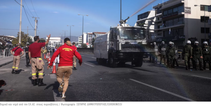 Επεισόδια ξέσπασαν έξω από το υπουργείο Κλιματικής Κρίσης και Πολιτικής Προστασίας επί της λεωφόρου Κηφισίας ανάμεσα σε εποχικούς πυροσβέστες και Αστυνομία.