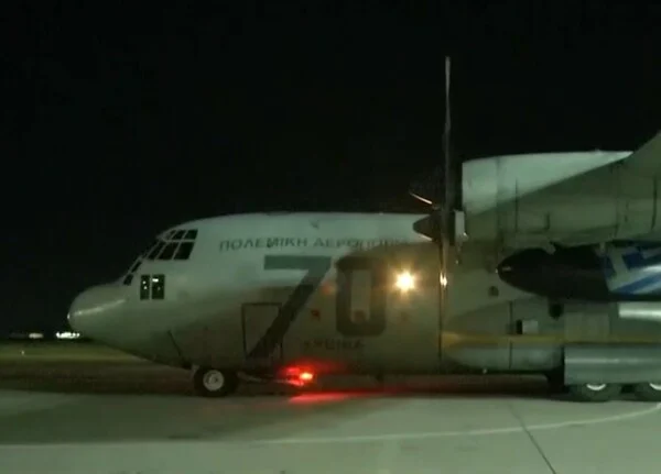 Λίγο μετά τις 19:00 προσγειώθηκε στο στρατιωτικό αεροδρόμιο της Ελευσίνας το C-130 με τους 91 Έλληνες που είχαν εγκλωβιστεί στο Άμπου Ντάμπι.