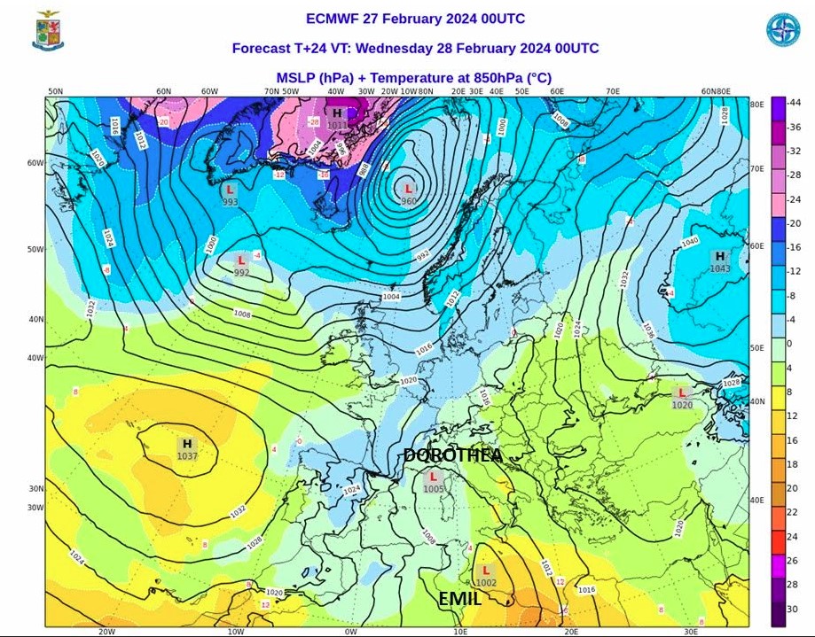 Επιδείνωση αναμένεται να παρουσιάσει ο καιρός στη χώρα μας από σήμερα, Πέμπτη, εξαιτίας ενός συστήματος χαμηλού βαρομετρικού. Το βαρομετρικό χαμηλό που σχηματίζεται από σήμερα στην Κεντρική Μεσόγειο και έχει λάβει το όνομα «Δωροθέα» από το Group Κεντρικής Μεσογείου της Eumetnet.