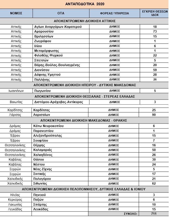 Ειδικότερα εγκρίθηκαν με υπογραφή Θεοδωρικάκου η σύναψη επτακοσίων έντεκα (711) συμβάσεων με σχέση εργασίας ιδιωτικού δικαίου ορισμένου χρόνου σε υπηρεσίες ανταποδοτικού χαρακτήρα σε ΟΤΑ α’ βαθμού, για χρονικό διάστημα έως οκτώ (8)