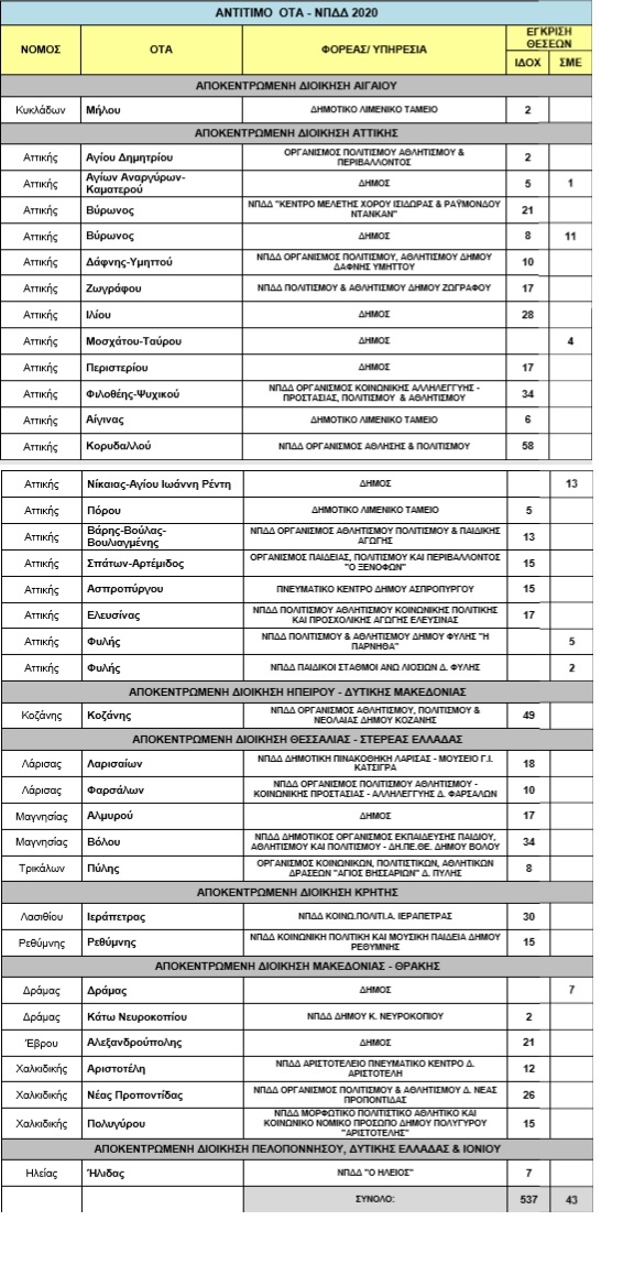 Με δεύτερη απόφαση του ΥΠΕΣ εγκρίνεται η σύναψη πεντακοσίων τριάντα επτά (537) συμβάσεων με σχέση εργασίας ιδιωτικού δικαίου ορισμένου χρόνου και σαράντα τριών (43) συμβάσεων μίσθωσης έργου σε ΟΤΑ και ΝΠΔΔ αυτών, για την παροχή υπηρεσιών έναντι αντιτίμου.