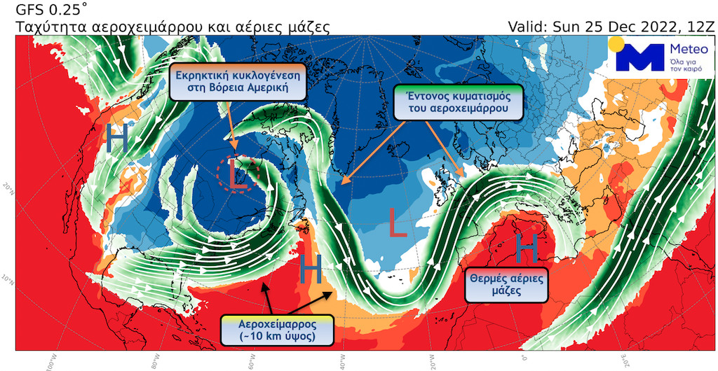 Σύμφωνα με νεότερα δεδομένα, ένα σημαντικό και μεγάλης κλίμακας μετεωρολογικό φαινόμενο βρίσκεται σε εξέλιξη στην περιοχή της Βόρειας Αμερικής την Πέμπτη 22 Δεκεμβρίου 2022 το οποίο αναμένεται να έχει σημαντικές επιπτώσεις στον καιρό της Ευρώπης κατά τη διάρκεια των Χριστουγέννων.