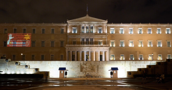 Φωταγώγηση του κτηρίου της Βουλής για τη Διεθνή Ημέρα Μνήμης των Θυμάτων του Ολοκαυτώματος