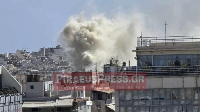 Όπως φαίνεται στο βίντεο του Piraeus Press, φαίνεται ότι μια πολυκατοικία λίγα στενά μακριά από το δημαρχείο είχε «κρυφτεί» από πυκνούς καπνούς.