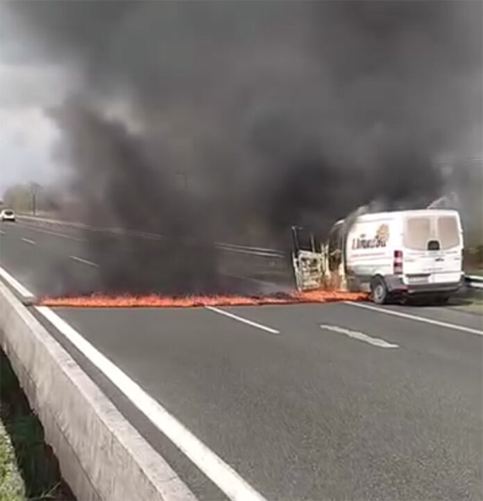 Η φωτιά εκδηλώθηκε στο όχημα στις 12:25. Ο οδηγός του βαν δεν τραυματίστηκε. Το φορτηγό καταστράφηκε ολοσχερώς.