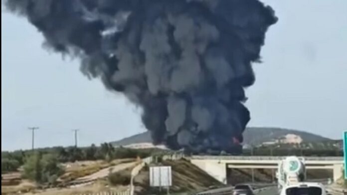 Μεγάλη φωτιά ξέσπασε νωρίτερα το μεσημέρι της Τρίτης σε εργοστάσιο με στρώματα και αφρολέξ στο Βαθύ Αυλίδας.