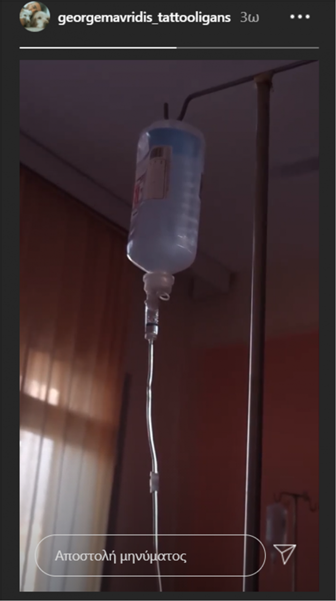 Ο γνωστός παρουσιαστής και tattoo artist ανέβασε στα Instastories μία φωτογραφία που δείχνει τον ορό που του έχουν χορηγήσει οι γιατροί.