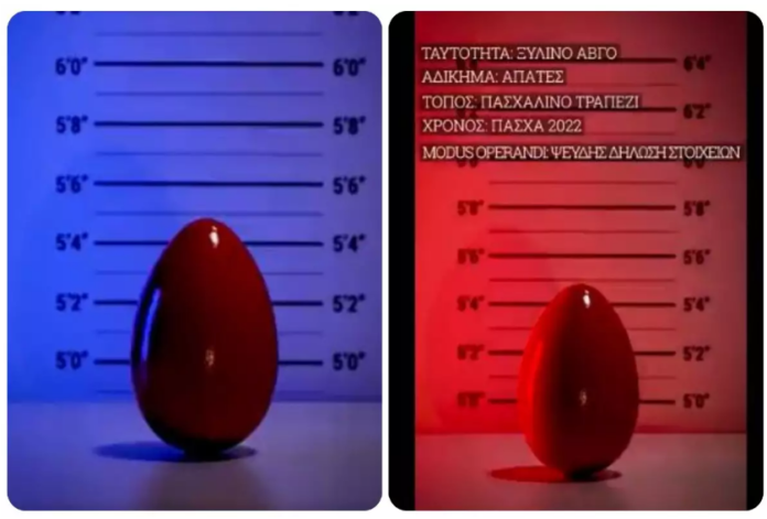 Σε ανάρτηση στο Twitter, η ΕΛ.ΑΣ. στέλνει τις ευχές της για το Πάσχα στέλνει και μήνυμα για την αποφυγή απάτης, με ένα κόκκινο αυγό που έχει συλληφθεί ως μέλος συμμορίας. «Πόσο εύκολα μπορείς να αναγνωρίσεις μία απάτη;» αναφέρει – μεταξύ άλλων – η ανάρτηση.