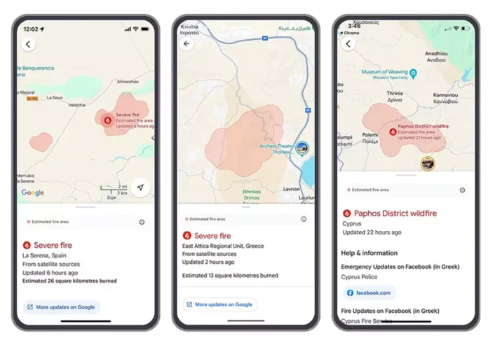 Έχοντας αναπτύξει αυτή τη νέα υπηρεσία φέτος το καλοκαίρι, η Google έχει ήδη χαρτογραφήσει πάνω από 40 πυρκαγιές στη νότια Ευρώπη, συμπεριλαμβανομένων πυρκαγιών στην Ισπανία, την Ελλάδα και την Κύπρο τον περασμένο μήνα – καθώς και άλλες από την Πορτογαλία έως την Κένυα.