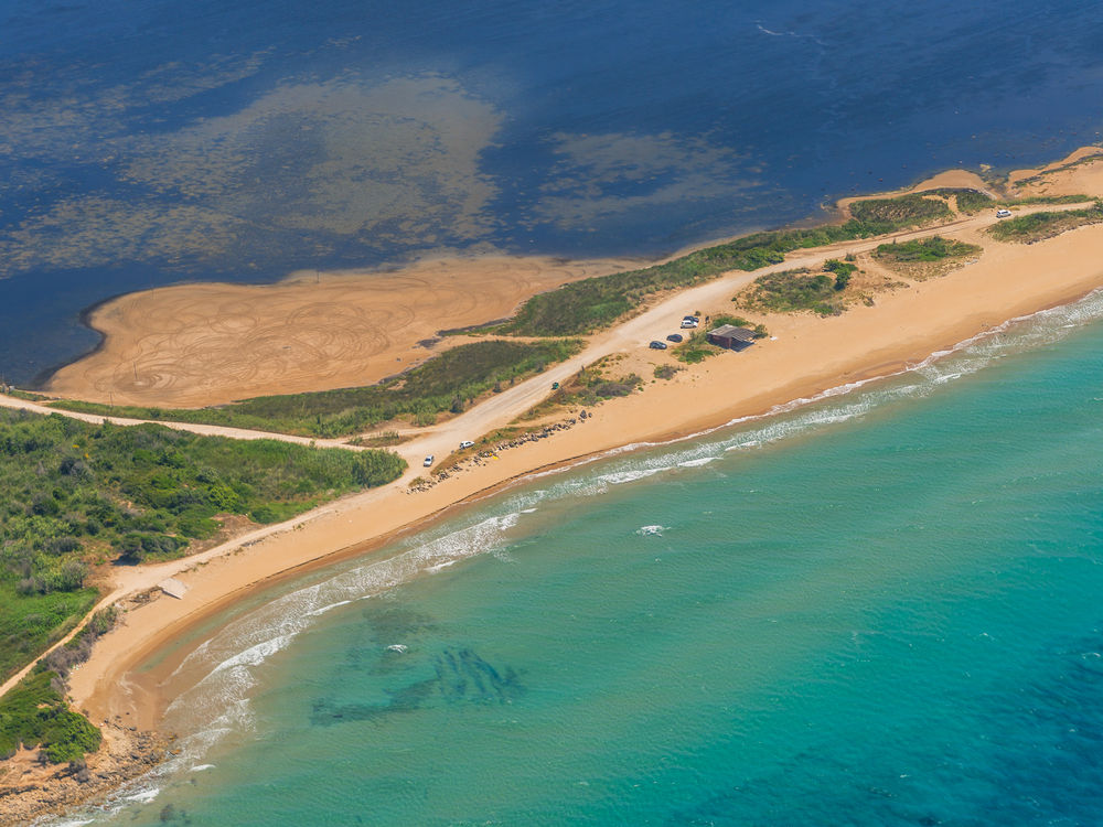 Μια λωρίδα άμμου στη νοτιοδυτική Κέρκυρα που εκτείνεται για αρκετά χιλιόμετρα ανάμεσα στην ανοιχτή θάλασσα του βόρειου Ιονίου και τη λίμνη Κορισσίων, σε άλλα σημεία λεπταίνει και σε άλλα γίνεται αρκετά πλατειά.