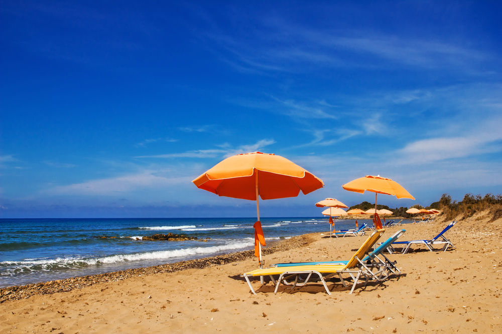 Οι ομπρέλες και οι ξαπλώστρες στον Χαλικούνα της Κέρκυρας μπορούν να έχουν την απαραίτητη απόσταση