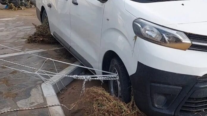 Το μέγεθος της έντασης του άγριου καιρικού φαινομένου που σάρωσε τη Νάουσα στην Πάρο, μαρτυρείται και από την απεγνωσμένη προσπάθεια ιδιοκτήτη μικρού φορτηγού οχήματος να το περισώσει, όπως σημειώνει το parianostypos.gr σε σημερινό (01.04.2025) δημοσίευμα.