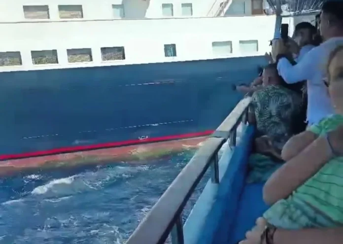 Σε βίντεο που δημοσίευσαν επιβάτες του Nidri Star 1, καταγράφονται οι αγωνιώδεις στιγμές, με το ατύχημα να αποφεύγεται κυριολεκτικά την τελευταία στιγμή.