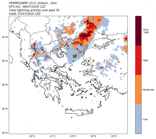 Παράλληλα, έντονη κεραυνική δραστηριότητα αναμένεται τις μεσημεριανές και βραδινές ώρες σήμερα. Το Meteo δημοσίευσε χάρτες, που παρουσιάζουν τη δραστηριότητα που αναμένεται να εκδηλωθεί, σύμφωνα με το σύστημα TALOS.