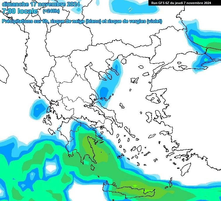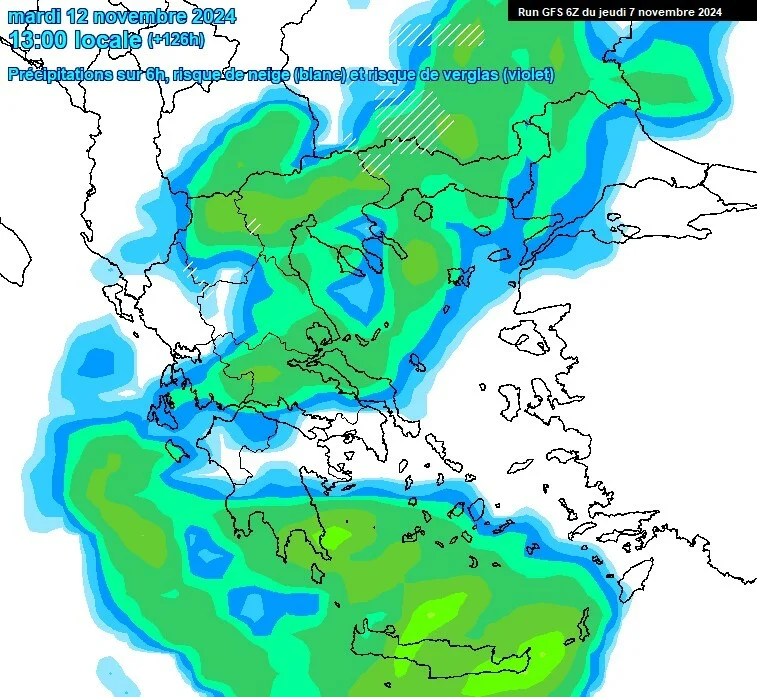 Στη Θράκη, το ανατολικό Αιγαίο, τα Δωδεκάνησα, τις Κυκλάδες και την Κρήτη λίγες νεφώσεις κατά τόπους αυξημένες με πιθανότητα για ασθενείς τοπικές βροχές. Στην υπόλοιπη χώρα νεφώσεις με τοπικές βροχές. Σποραδικές καταιγίδες θα εκδηλωθούν στο νότιο Ιόνιο, τη δυτική Στερεά, τη δυτική Πελοπόννησο, την κεντρική Μακεδονία και την ανατολική Θεσσαλία. Ασθενείς χιονοπτώσεις θα σημειωθούν στα ορεινά της ηπειρωτικής χώρας (υψόμετρο από 1500 μέτρα και πάνω). Οι άνεμοι θα πνέουν στα δυτικά νοτιοανατολικοί 3 με 5, τοπικά στο νότιο Ιόνιο 6 μποφόρ και στα ανατολικά απο βόρειες διευθύνσεις 3 με 5 και το πρωί στο Αιγαίο τοπικά 6 μποφόρ. Η θερμοκρασία θα σημειώσει μικρή περαιτέρω πτώση.