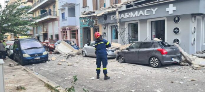 Από τα συντρίμμια προκλήθηκαν ζημιές σε σταθμευμένα αυτοκίνητα ενώ τραυματίστηκε ελαφρά μία διερχόμενη γυναίκα που υπέστη εκδορές.