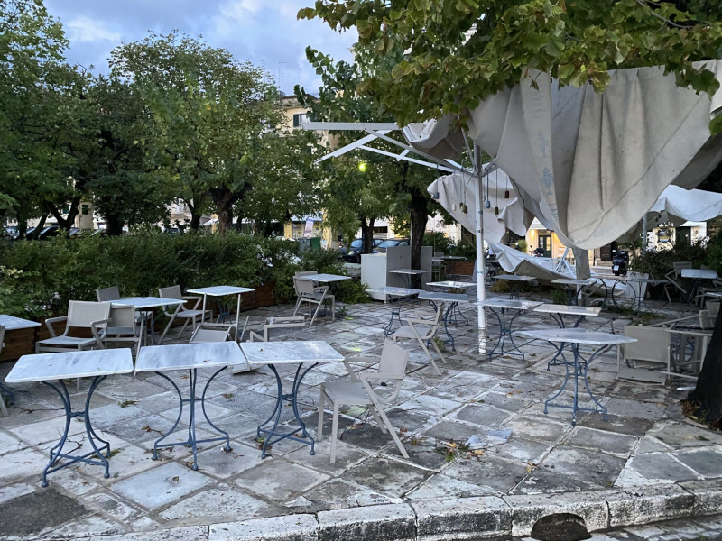 Από την πτώση δέντρων στην πλατεία Σπιανάδα, στο Λιστόν, υπέστησαν σοβαρές υλικές ζημιές δύο σταθμευμένα αυτοκίνητα, ενώ χρειάστηκε η παρέμβαση της Πυροσβεστικής Υπηρεσίας και της Πολιτικής Προστασίας Κέρκυρας για να απομακρυνθούν οι τεράστιοι ξεριζωμένοι κορμοί από την κεντρική πλατεία της πόλης.