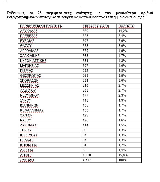 Τον Σεπτέμβριο ενεργοποιήθηκαν 7.727 επιταγές κοινωνικού τουρισμού του Οργανισμού Απασχόλησης Εργατικού Δυναμικού (ΟΑΕΔ) σε τουριστικά καταλύματα της χώρας, σημειώνοντας αύξηση 151% σε ετήσια βάση.