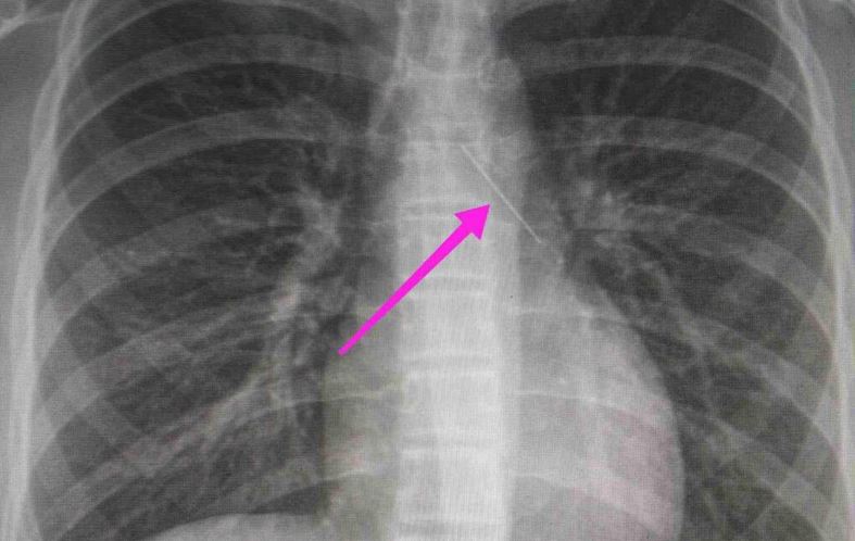 Το κορίτσι μεταφέρθηκε αμέσως στο νοσοκομείο και οι γιατροί εντόπισαν αρχικά την καρφίτσα στον αριστερό βρόγχο, στον αυλό που οδηγεί στον πνεύμονα. Όταν όμως έγινε η βρογχοσκόπηση, βρέθηκε στον άλλον βρόγχο.
