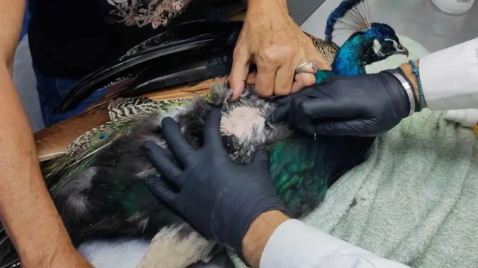 Προ εκπλήξεως βρέθηκαν οι άνθρωποι του συλλόγου Προστασίας και Περίθαλψης Άγριας Ζωής ΑΝΙΜΑ που κλήθηκαν να εξετάσουν ένα παγώνι το οποίο φιλοξενείται στον αρχαιολογικό χώρο της Κνωσού.