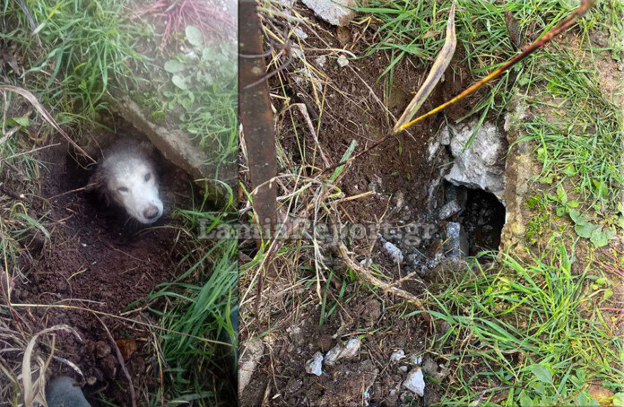 Πυροσβέστης εκτός υπηρεσίας επενέβη για τη διάσωσή ενός σκύλου, ο οποίος ήταν τρεις ημέρες παγιδευμένος σε τσμενταύλακα στο Αμούρι Λαμίας