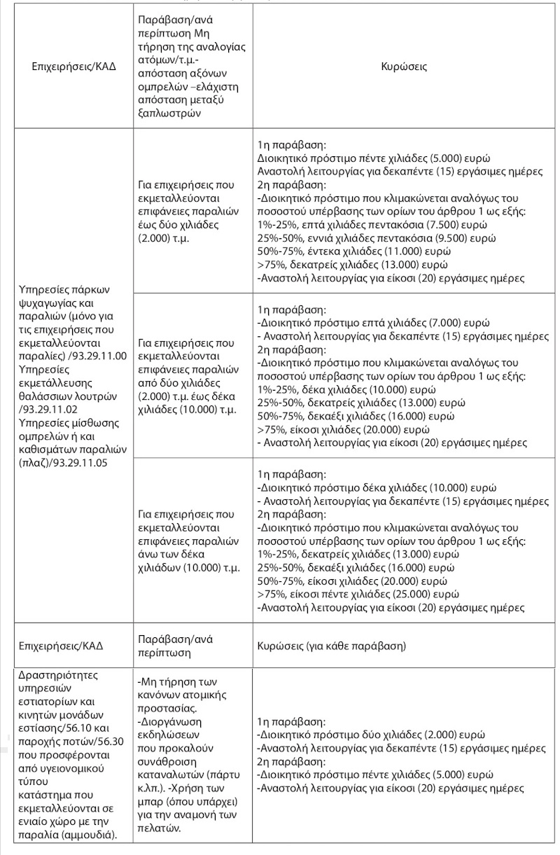 Η Κοινή Υπουργική Απόφαση καθορίζει επίσης τους κανόνες λειτουργίας των επιχειρήσεων που βρίσκονται παραλίες, τις απαγορεύσεις και τις κυρώσεις σε περίπτωση παραβίασης των κανονισμών.