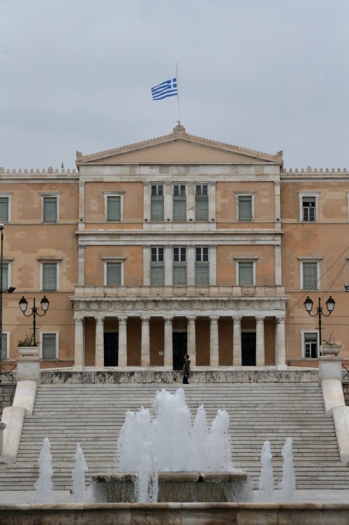 Οι σημαίες κυματίζουν μεσίστιες και σε δημόσια κτίρια, δημαρχεία και πλατείες σε όλη την Αθήνα αλλά και την Ελλάδα.
