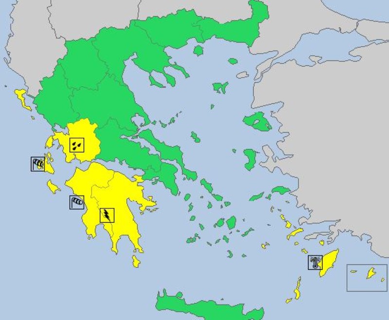 O χάρτης του MeteoAlarm για τον καιρό της Πέμπτης: