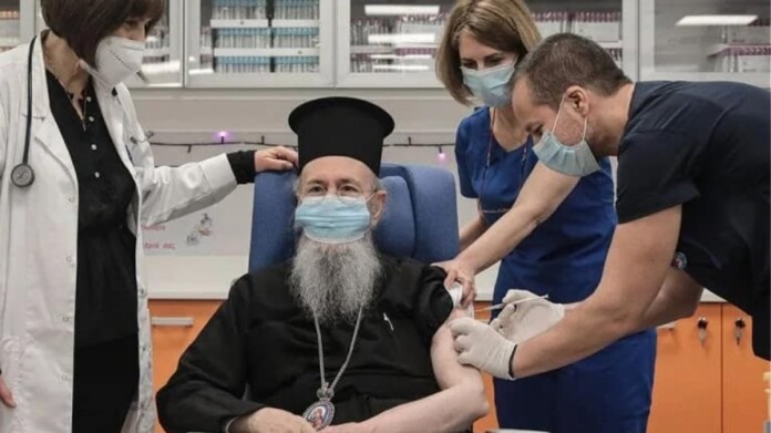 Η εικόνα του μητροπολίτη Ναυπάκτου Ιερόθεου να εμβολιάζεται κατά του κορωνοϊού είναι συμβολική από πολλές απόψεις