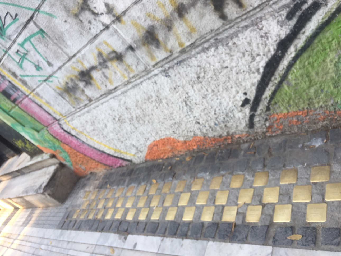 Τα σημαδάκια αυτά ονομάζονται Stolpersteine και μπορεί να τα δεις σε πολλές πόλεις του κόσμου. Αναγνωρίζοντάς τα νιώθεις ένα είδος συμμετοχής σε κάτι άυλο, σαν κάποιος να σου κλείνει το μάτι λέγοντας «ξέρω ότι ξέρεις». Αυτά τα μικρά μπρούντζινα σημαδάκια, που είναι σαν μικρές πέτρες πεζοδρομίου, είναι ένα καλλιτεχνικό project που παρουσιάζεται σε 650 πόλεις σε 20 χώρες του κόσμου.