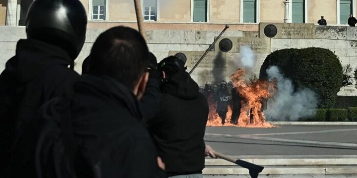 Επεισόδια ξέσπασαν στο Σύνταγμα, κατά την άφιξη της πορείας για το πανεκπαιδευτικό συλλαλητήριο, όταν άγνωστοι ξεκίνησαν να πετούν πέτρες και μολότοφ προς τους άντρες των ΜΑΤ που βρίσκονταν μπροστά από το Μνημείο του Άγνωστου Στρατιώτη, ενώ εκείνοι απάντησαν με χρήση χημικών.
