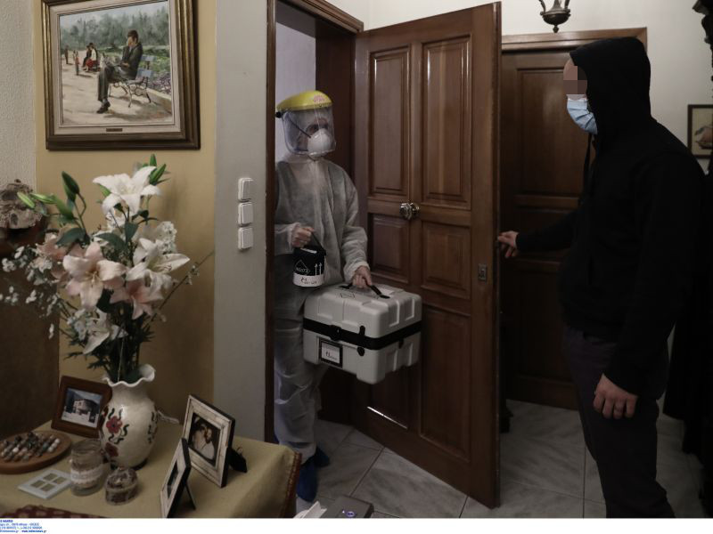 Εικόνες από τις κατ’ οίκον δειγματοληψίες για τον κορωνοϊό