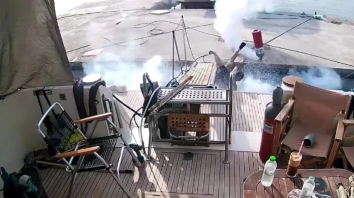 Το περιστατικό έγινε το απόγευμα της Τετάρτης (8/5) στο λιμάνι του Βόλου με το νεαρό να περιεργάζεται πυροσβεστήρα μπροστά από ένα σκάφος, ο οποίος ανοίγοντας απότομα με την πίεση που ελευθέρωσε το υλικό, κυριολεκτικά τον εκτόξευσε και τον πέταξε στη θάλασσα.