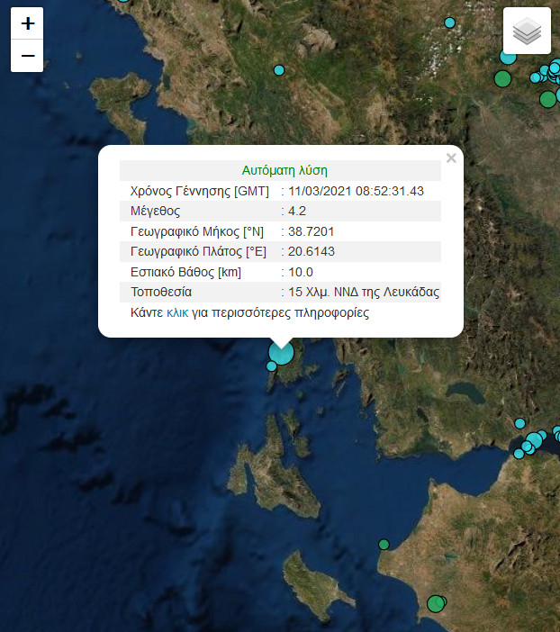 Ο σεισμός σύμφωνα με την αυτόματη λύση του Γεωδυναμικού Ινστιτούτου σημειώθηκε 15 χλμ. νότια νοτιοδυτικά της Λευκάδας και είχε εστιακό βάθος 10 χιλιόμετρα.