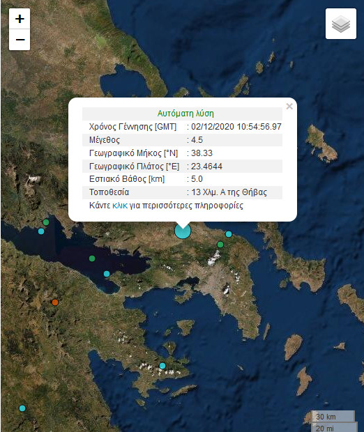 Ο σεισμός είχε επίκεντρο 13 χλμ. ανατολικά της Θήβας και εστιακό βάθος τα 5 χλμ. σύμφωνα με την αυτόματη λύση του Γεωδυναμικού Ινστιτούτου.