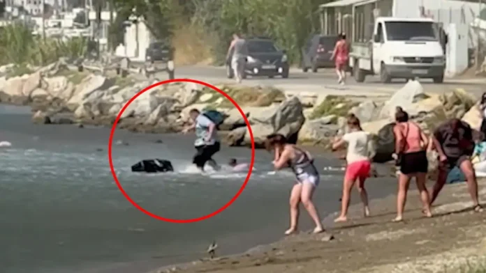 Χαρακτηριστικό πλάνο είναι η στιγμή που ένας τουρίστας τρέχει στη θάλασσα για να βγάλει από το νερό την βαλίτσα του, η οποία είχε βουτήξει κανονικά!