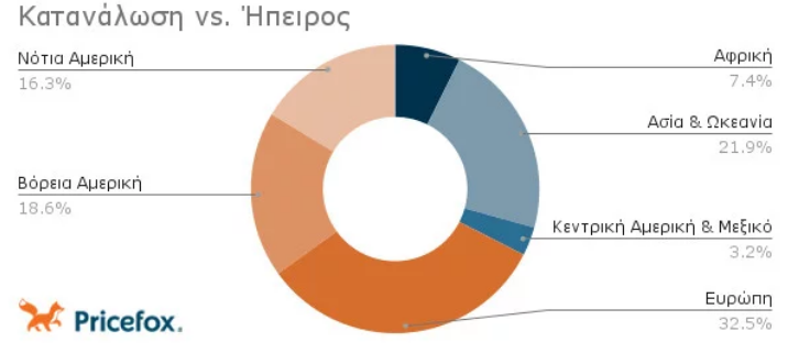 Η Ευρώπη καταναλώνει σχεδόν το 1/3 της παγκόσμιας αγοράς και την ακολουθούν η Ασία με την Ωκεανία που καταναλώνουν το 1/5 της παγκόσμιας αγοράς καφέ.