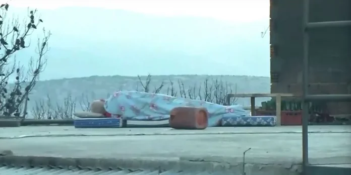 Η κάμερα της ΕΡΤ, κατέγραψε μια συγκλονιστική εικόνα το πρωί της Πέμπτης (20/6), με έναν άνδρα να έχει επιστρέψει στον οικισμό και να κοιμάται πάνω στην ταράτσα του καμένου του σπιτιού, πάνω σε μικρά μαξιλάρια από καναπέ και να σκεπάζεται με μια μικρή κουβέρτα, ότι απέμεινε από την καταστροφική πυρκαγιά. Αυτή η εικόνα αποτυπώνει την πλήρη απόγνωση των ανθρώπων αυτών, που δεν έχουν που να μείνουν και η επόμενη μέρα για αυτούς φαντάζει τελείως αβέβαιη.
