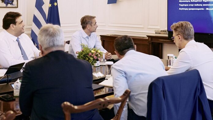 Σύσκεψη με θέμα την επιτάχυνση των διαδικασιών προσλήψεων στον δημόσιο τομέα πραγματοποιήθηκε σήμερα το απόγευμα, στο Μέγαρο Μαξίμου, υπό τον πρωθυπουργό Κυριάκο Μητσοτάκη.