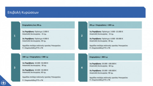 Σε αντίθετη περίπτωση, προβλέπεται η επιβολή χρηματικών προστίμων, τόσο για τους πολίτες, όσο και για τις επιχειρήσεις. Αναλυτικότερα, προβλέπεται πρόστιμο 150 ευρώ για όσους δεν φορούν μάσκα στους χώρους που ανέφερε η κυβέρνηση (κομμωτήρια, καταστήματα, ΜΜΜ κλπ), 1.000 ευρώ για συναθροίσεις άνω των 10 ατόμων και 5.000 ευρώ για καταστήματα / επιχειρήσεις που απαγορεύεται να λειτουργούν.