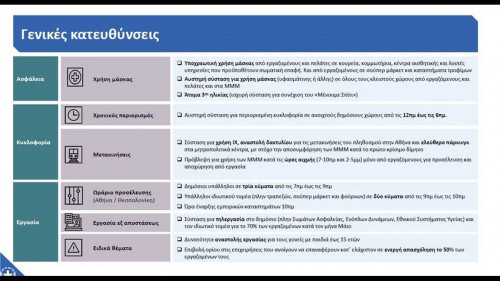 - Υποχρεωτική χρήση προστατευτικής μάσκας από τους εργαζόμενους και το επιβατικό κοινό. Ο έλεγχος της εφαρμογής του μέτρου θα γίνεται από τους ελεγκτικούς μηχανισμούς που είναι επιφορτισμένοι με αυτό το καθήκον.