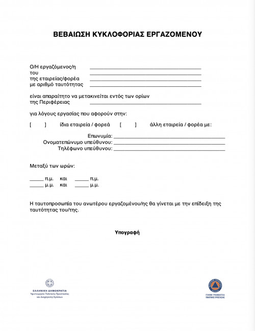 Στην ιστοσελίδα forma.gov.gr έχουν αναρτηθεί τα έγγραφα τα οποία θα πρέπει να συμπληρώνουν οι πολίτες, ενώ δίνονται και όλες οι οδηγίες αναλυτικά. Ο πρώτος τύπος εγγράφου αφορά τους εργαζόμενους.